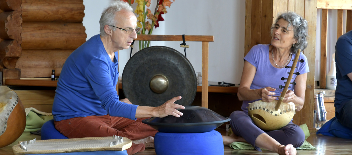 Stimme, Rhythmus und Bewegung führen uns zu uns selbst, in die Begegnung mit dem anderen und zur Lebendigkeit in der Gemeinschaft. Trommel-, Gong- und Bambusklänge bezeugen und bekräftigen unsern Klangweg.